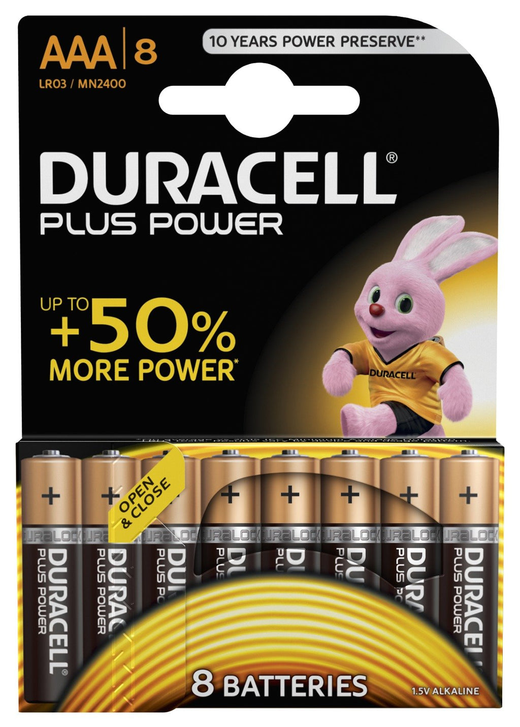 Duracell Plus Power, Batería de un solo uso, AAA, Alcalino, 1,5 V, 8 pieza(s), Multicolor