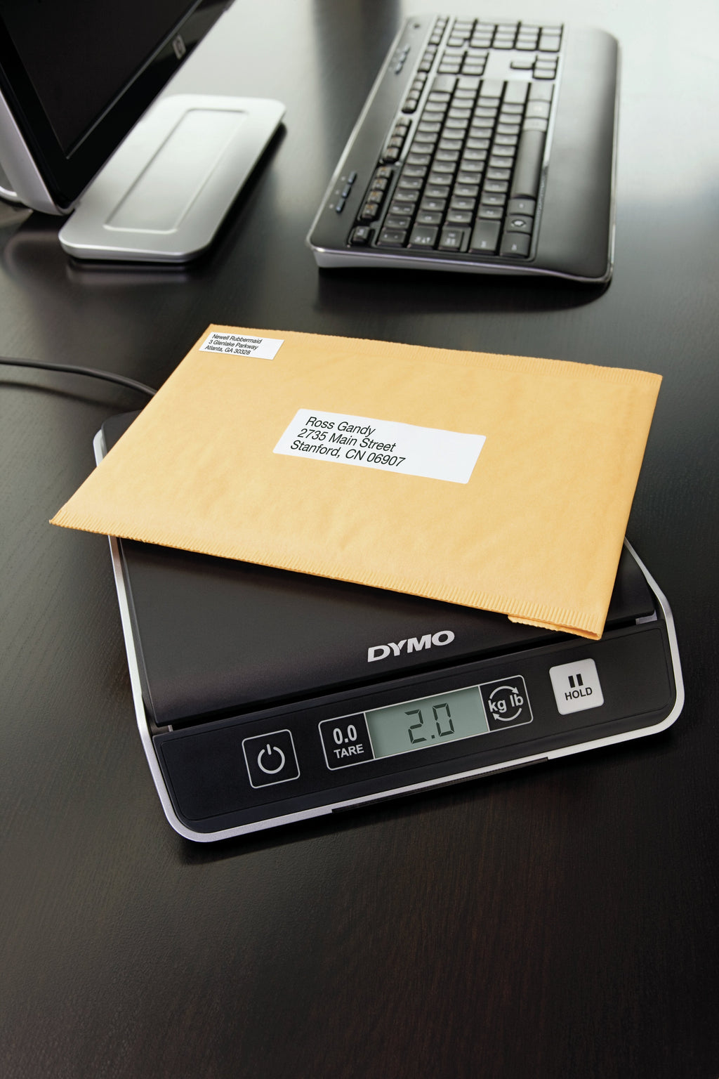 Con la compacta y precisa Báscula USB digital para cartas DYMO M5, puede pesar sobres y paquetes desde su propio escritorio sin necesidad de desplazarse a la Oficina de Correos. Permite pesar sobres y paquetes de hasta 5 kg (11 lb) en su bandeja de 20x 20 cm (7,9”x 7,9”) . La pantalla LCD de la báscula DYMO M5 muestra el peso en formato digital de fácil lectura, en kg/g (0 kg 000g) o lbs/oz (0 lb 00,0 oz). La función “mantener” LED encendido sigue mostrando el peso durante 10 segundos después de quitar el sobre o paquete, una utilidad perfecta para pesar artículos grandes que bloqueen la visualización de la pantalla. La función de tara le permite pesar artículos en una bandeja sin incluir el peso de la bandeja. La función de apagado automático permite prolongar la duración de las pilas mientras no se utiliza la báscula. Y con un tamaño de 23,4 cm L x 21,1 cm An x 4,5 cm Al, la báscula DYMO M5 se adapta al escritorio más lleno y se puede guardar sin problemas en casi cualquier cajón. El software gratuito de DYMO Scale. Muestra el peso de la báscula en la pantalla de su Mac o su PC. Descargar el software DYMO Scale: www.dymo.com/scalesoftware. Funciona con 3 pilas AAA (no incluidas) o cable USB (incluido) conectado a PC o Mac® (Funciona con Windows® XP, Windows Vista™, Windows® 7 o Mac OS® v10.4 o una versión posterior).