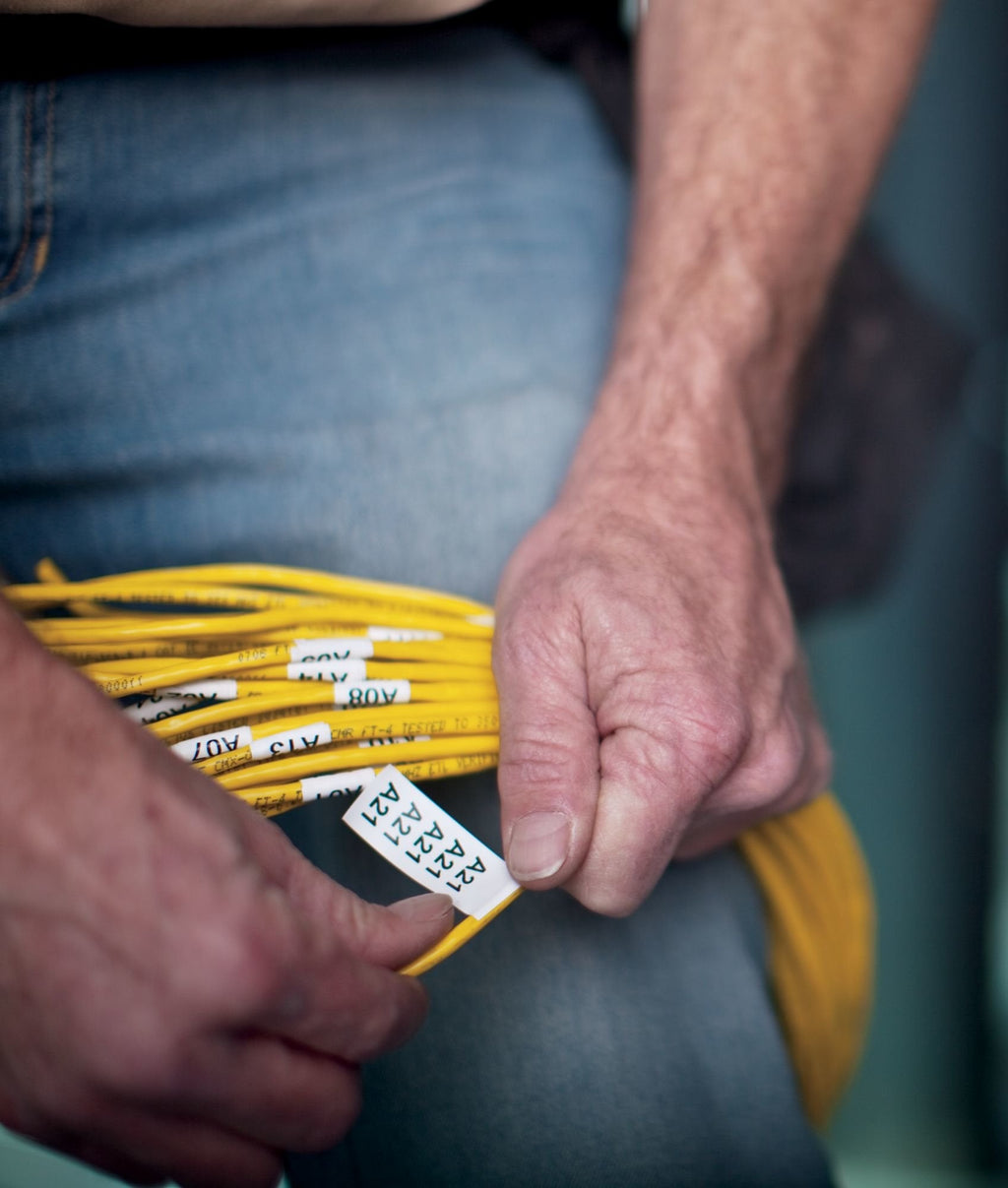 - Imprima etiquetas industriales de 6,35 mm, 10 mm, 12 mm y 19 mm de ancho en una variedad de materiales y colores, además de imprimir directamente en tubos termorretráctiles
