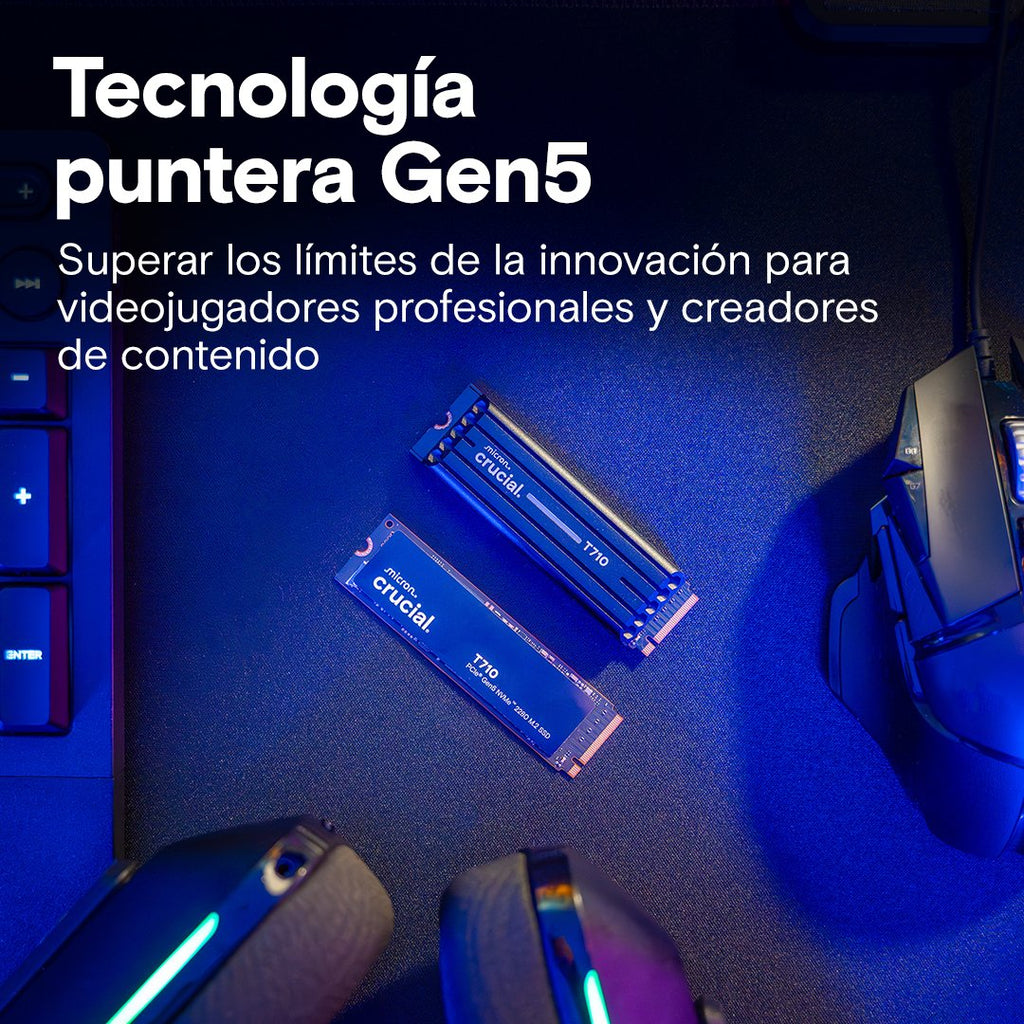Crucial es una marca pionera en almacenamiento ultrarrápido Gen5, creado para ofrecer el máximo rendimiento. La T710 incorpora las últimas innovaciones de Crucial superando los límites de lo imposible para videojuegos, aplicaciones profesionales de creación de contenido y mucho más.