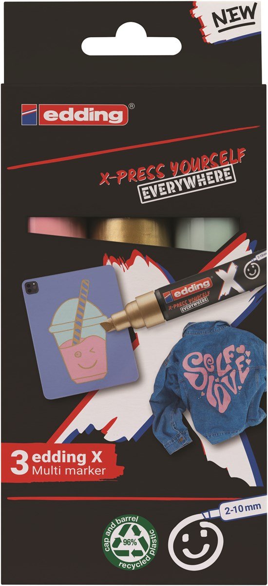 Edding 6900 X Multimarker marcador permanente Punta de cincel Oro, Verde claro, Rosa claro 3 pieza(s)