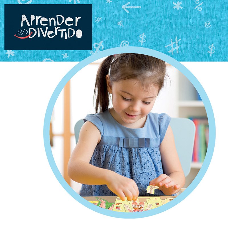 Aprender es Divertido’ es una colección de juegos especialmente creada para acompañar al niño/a en su proceso de crecimiento y aprendizaje, potenciando el desarrollo de sus capacidades, habilidades y personalidad. Con este divertido juego aprenderán las distintas partes del cuerpo humano. Sobre una silueta de niño o niña podrán encajar las principales partes del cuerpo, esqueleto y órganos. Contenido: 99 piezas para formar 4 puzzles (niño, niña, esqueleto y órganos), 1 marco con las partes del cuerpo, instrucciones.