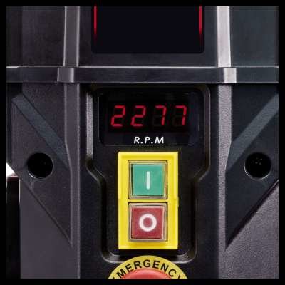 El taladro de columna de Einhell TE-BD 750 E es una herramienta potente y precisa que no debe faltar en ningún taller. Con una potencia máxima de 750 vatios, la velocidad del husillo se puede regular de 450 a 2500 revoluciones por minuto. Por ello, la velocidad se puede ajustar de forma continua y sin necesidad de herramientas. Una pantalla LCD muestra la velocidad actual. El motor de inducción, suave y silencioso, garantiza un funcionamiento cómodo. El portabrocas de sujeción rápida se puede equipar con todos los tamaños de taladro comunes de 1 a 16 milímetros. Además, el taladro de columna Einhell TE-BD 750 E está equipada con un adaptador MK2 para taladros cónicos Morse. La mesa de taladrado, giratoria, con altura e inclinación ajustables, y provista de extensión, ofrece unas condiciones óptimas para todas las operaciones de perforación que se deseen. Una luz LED garantiza una óptima iluminación de la mesa de taladrado. El husillo afilado con rodamiento de bolas garantiza una larga vida útil. El interruptor de parada de emergencia y el protector del husillo de seguridad proporcionan una mayor seguridad. El vuelo de la superficie de perforación es de 152 milímetros y la profundidad máxima de perforación es de 80 milímetros.