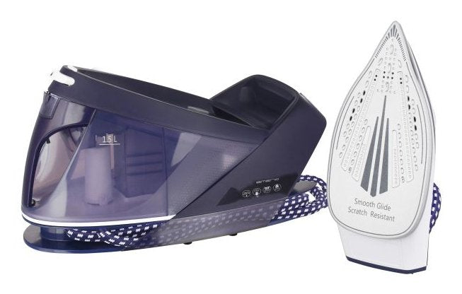 Emerio SG-123562 estación plancha al vapor 2200 W 1,5 L Suela de cerámica Púrpura, Blanco