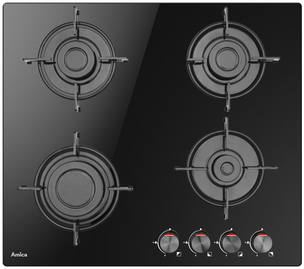 Amica PPGCD6100BoB, Negro, Integrado, 59 cm, Encimera de gas, Vidrio, 4 zona(s)