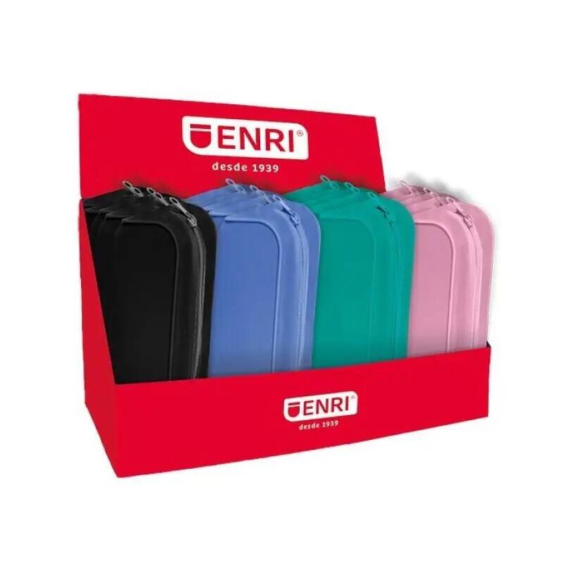 Enri Expositor De 20 Estuches Portatodo Con 3 Compartimentos - Cierres De Cremallera - Fabricado En Poliester - Colores