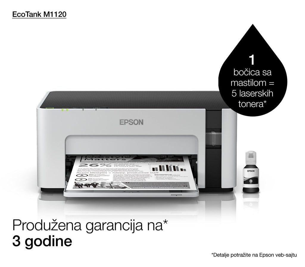 Epson EcoTank M1120, 1440 x 720 DPI, 1, A4, 15000 páginas por mes, 32 ppm, Negro, Blanco