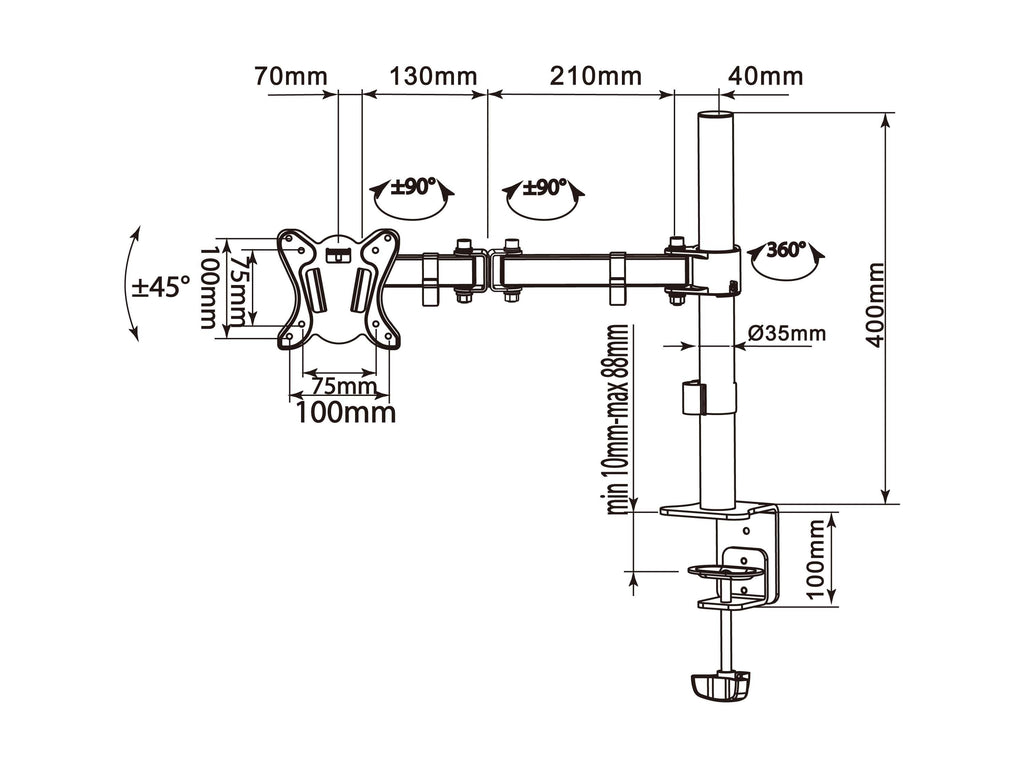 • Interfaz de panel de montaje: 75 x 75,100 x 100 mm