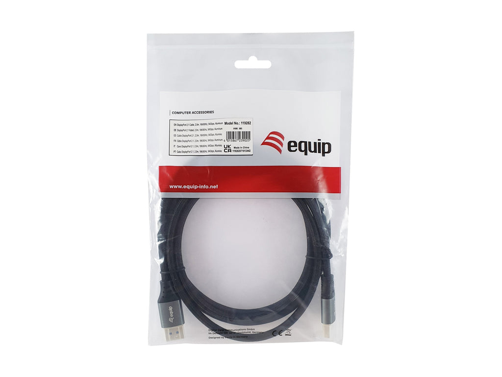 "El cable DisplayPort 2.1 de Equip con un ancho de banda de 54 Gbps está diseñado para la transmisión de audio y vídeo de alto rendimiento, por lo que es ideal para juegos, aplicaciones profesionales y sistemas de entretenimiento doméstico. Su impresionante ancho de banda soporta resoluciones de hasta 16K a 60Hz y 8K a 60Hz, proporcionando una calidad de imagen impresionante y visuales ultra suaves.