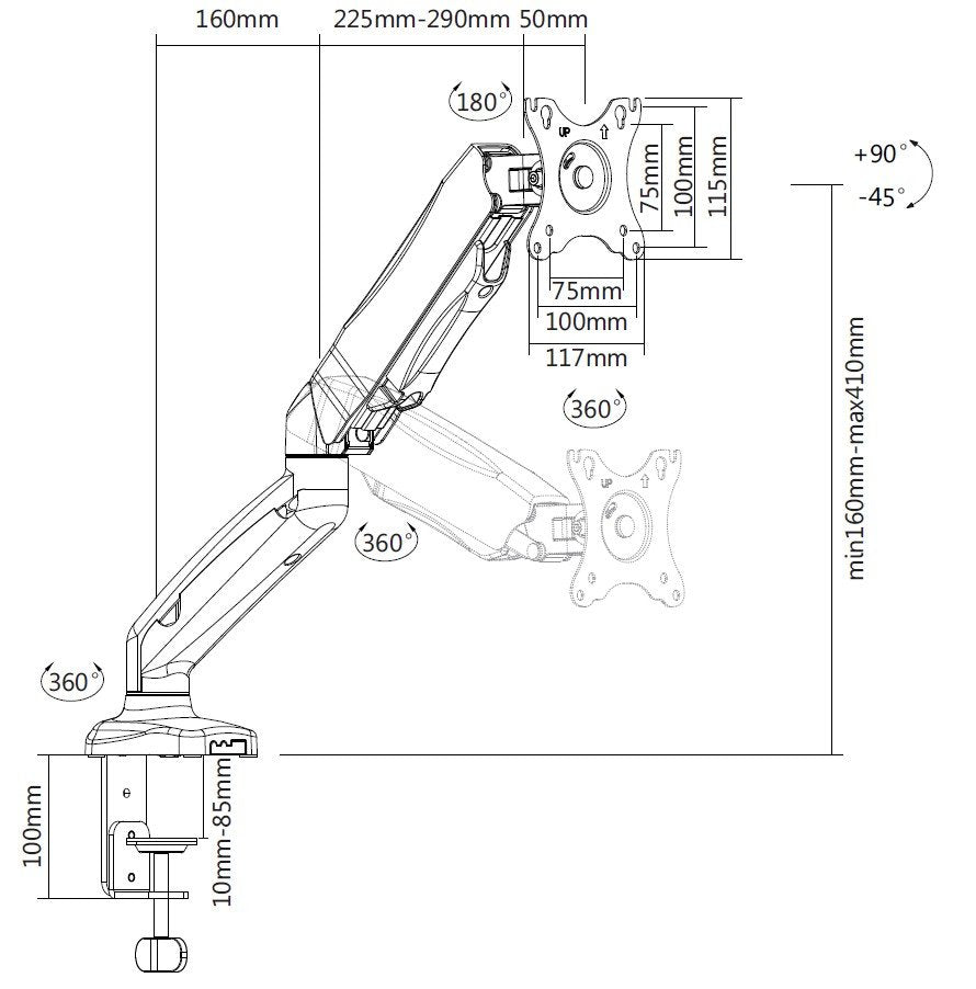Ideal para diversos entornos, como oficinas, estudios creativos y despachos domésticos, este soporte optimiza el espacio del escritorio a la vez que proporciona un aspecto elegante y organizado con gestión de cables integrada. El mecanismo de resorte de gas añade un toque de interactividad, permitiendo transiciones suaves entre las posiciones de sentado y de pie. Este soporte de escritorio para monitor interactivo aúna funcionalidad y diseño moderno, lo que lo convierte en la opción ideal para quienes buscan una mejora del espacio de trabajo versátil y fácil de usar."