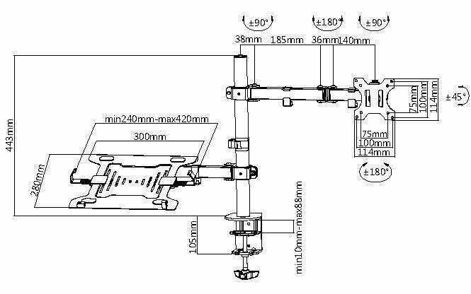"El soporte articulado de doble brazo para monitor y ordenador portátil equip® es una solución versátil para optimizar la eficiencia y comodidad de su puesto de trabajo. Diseñado para alojar tanto monitores como ordenadores portátiles, admite pantallas de varios tamaños. Los brazos dobles ofrecen un amplio rango de articulación, permitiendo ajustes suaves de inclinación, giro y rotación. Esto garantiza ángulos de visión ergonómicos y posiciones de pantalla personalizables para reducir la tensión y mejorar la productividad.