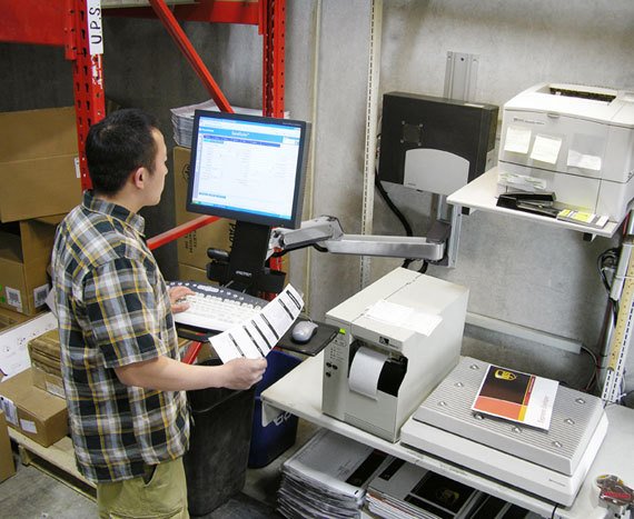 ¡Estructura resistente en aluminio pulido! El combo SV admite un monitor, un lector de códigos de barras, teclado, reposamuñecas y ratón en el mismo brazo, y además permite ajustar la altura fácilmente con un solo movimiento.