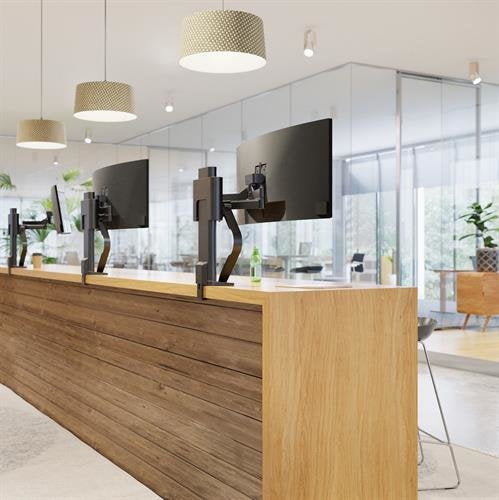 Este innovador soporte para monitor se adapta a la forma en que cada usuario trabaja y se siente mejor para crear espacios de trabajo ergonómicos y flexibles. Se ajusta intuitivamente entre tareas y posturas para fomentar el movimiento y la colaboración, volviendo siempre a su posición natural inicial. El diseño modular y su garantía premium de 15 años aumentan la solidez de una inversión a largo plazo.