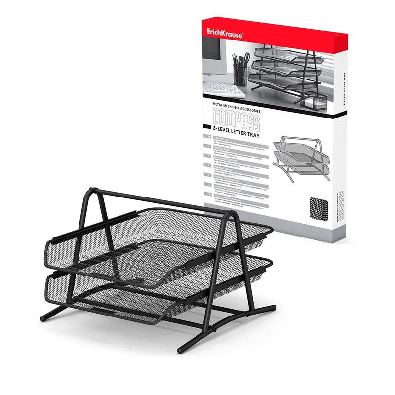 Erichkrause Compass - Bandeja Para Documentos De 2 Niveles - Mecanismo De Riel - Acero Inoxidable - Color Negro