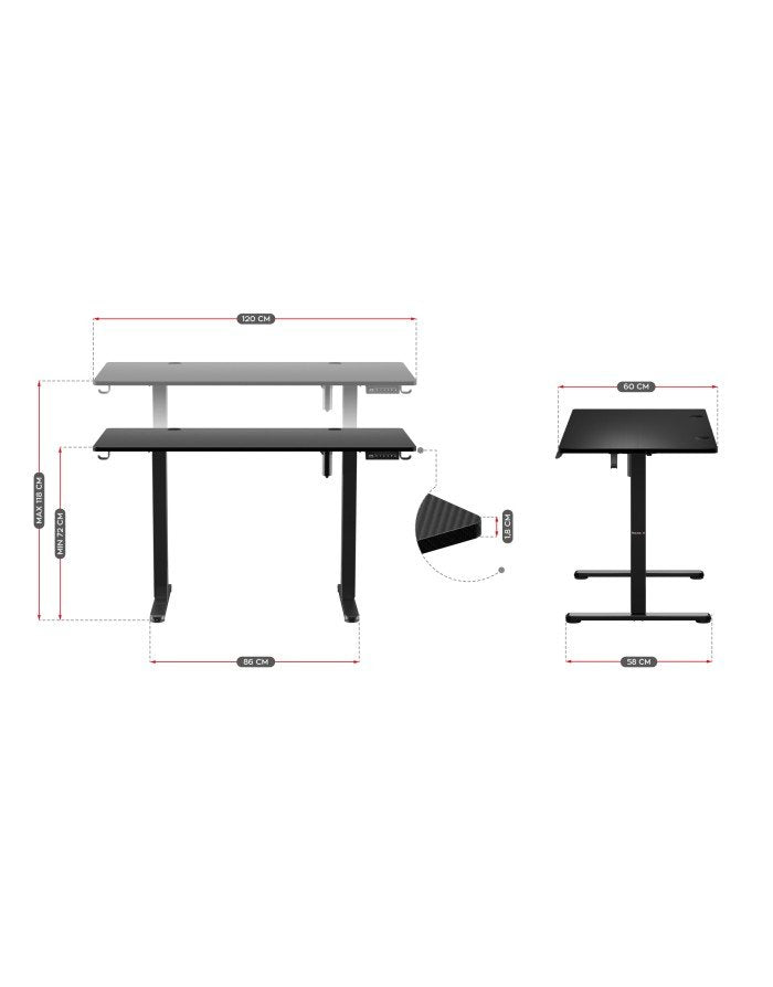 - Grosor del material del tablero del escritorio: 1,8 cm