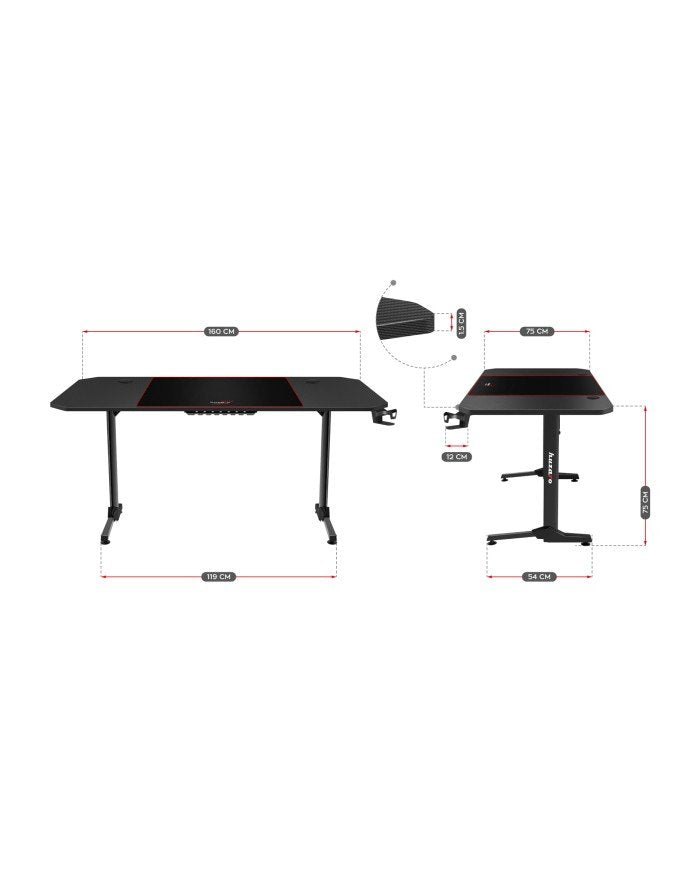 - Material del acabado del tablero de la mesa: Fibra de carbono