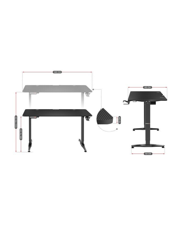 - Grosor del material del tablero del escritorio: 1,5 cm