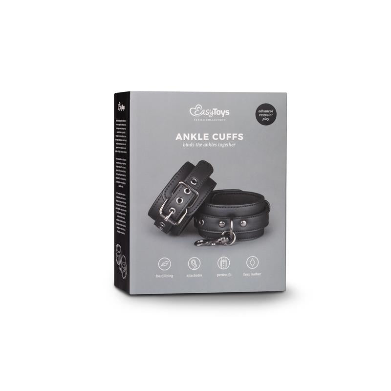 Esposas para tobillos para que tu pareja no escape de tu control. Se pueden ajustar, los puños están unidos entre sí con una cadena metalica, Están hechos de piel sintética forrada con espuma y son suaves y aterciopeadas, son muy cómodos de usar