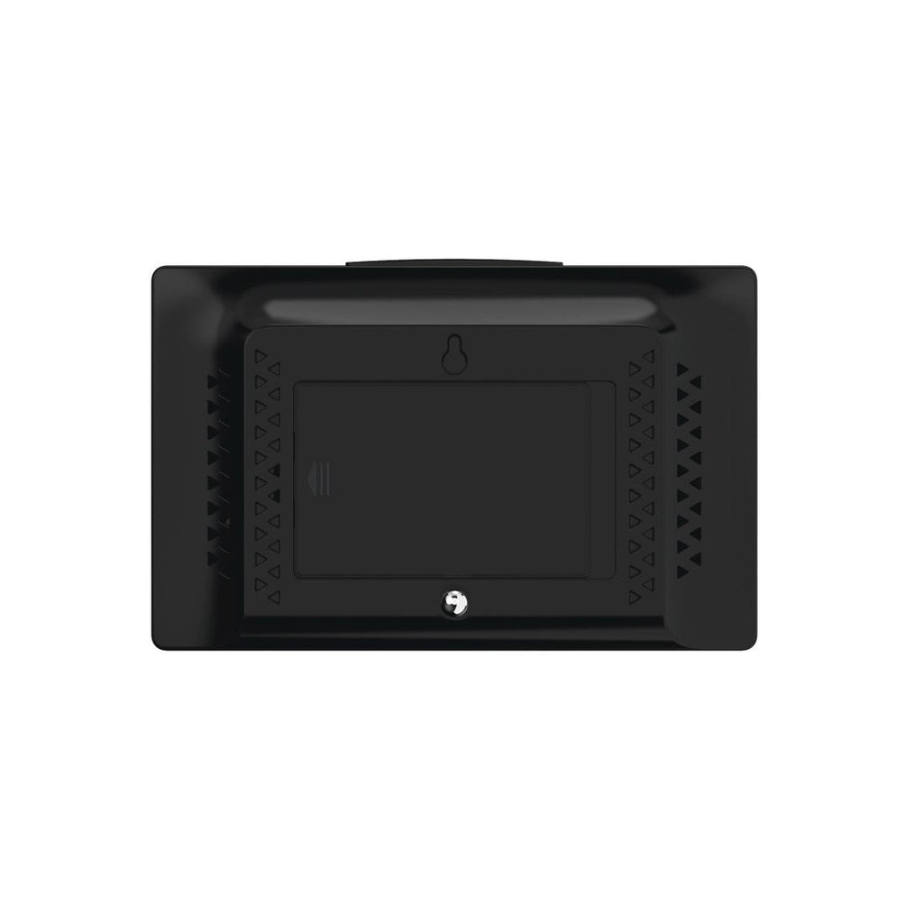 En la pantalla tiene 3 sensores táctiles y se pueden conectar hasta tres sensores exteriores inalámbricos. Y esto no es todo! Muestra una previsión meteorológica con cuatro símbolos: soleado, ligeramente nublado, nublado y lluvioso.