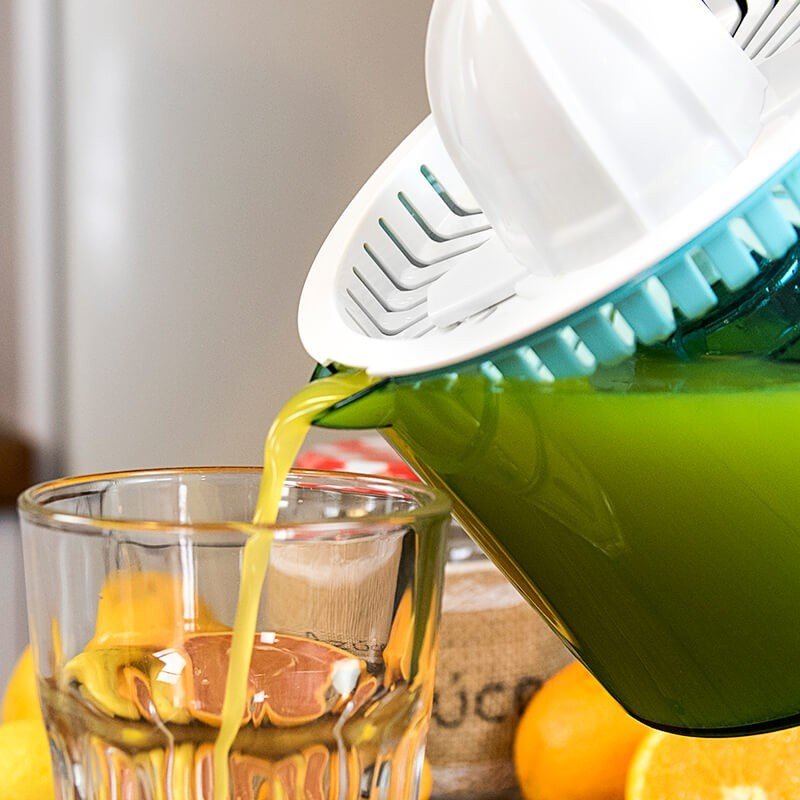 - Exprimidor eléctrico con brazo Transparente, Turquesa, Blanco