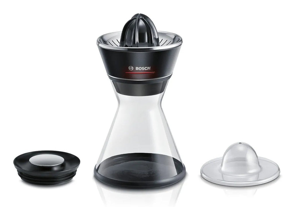 Bosch MCP72GPB prensasde cítricos Plástico, Acero inoxidable Negro, Transparente