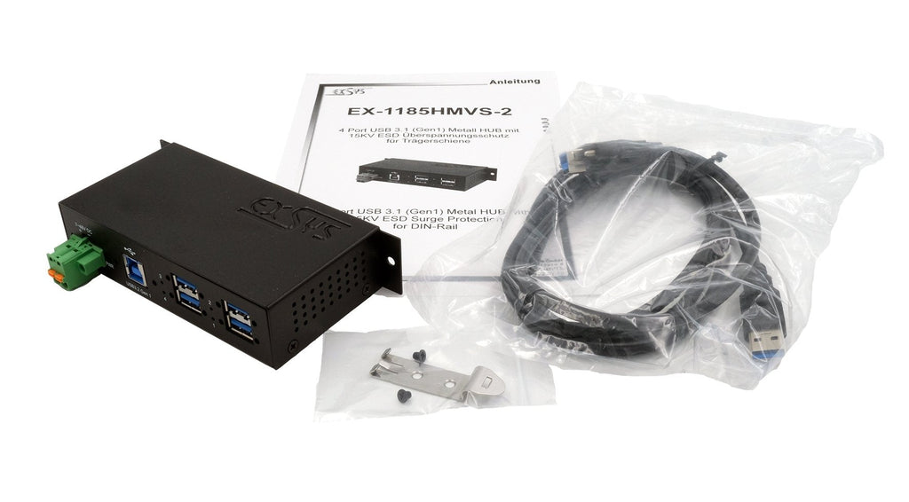 EXSYS EX-1185HMVS-2, USB 3.2 Gen 1 (3.1 Gen 1) Type-B, USB 3.2 Gen 1 (3.1 Gen 1) Type-A, 5000 Mbit/s, Negro, Metal, 1,5 m
