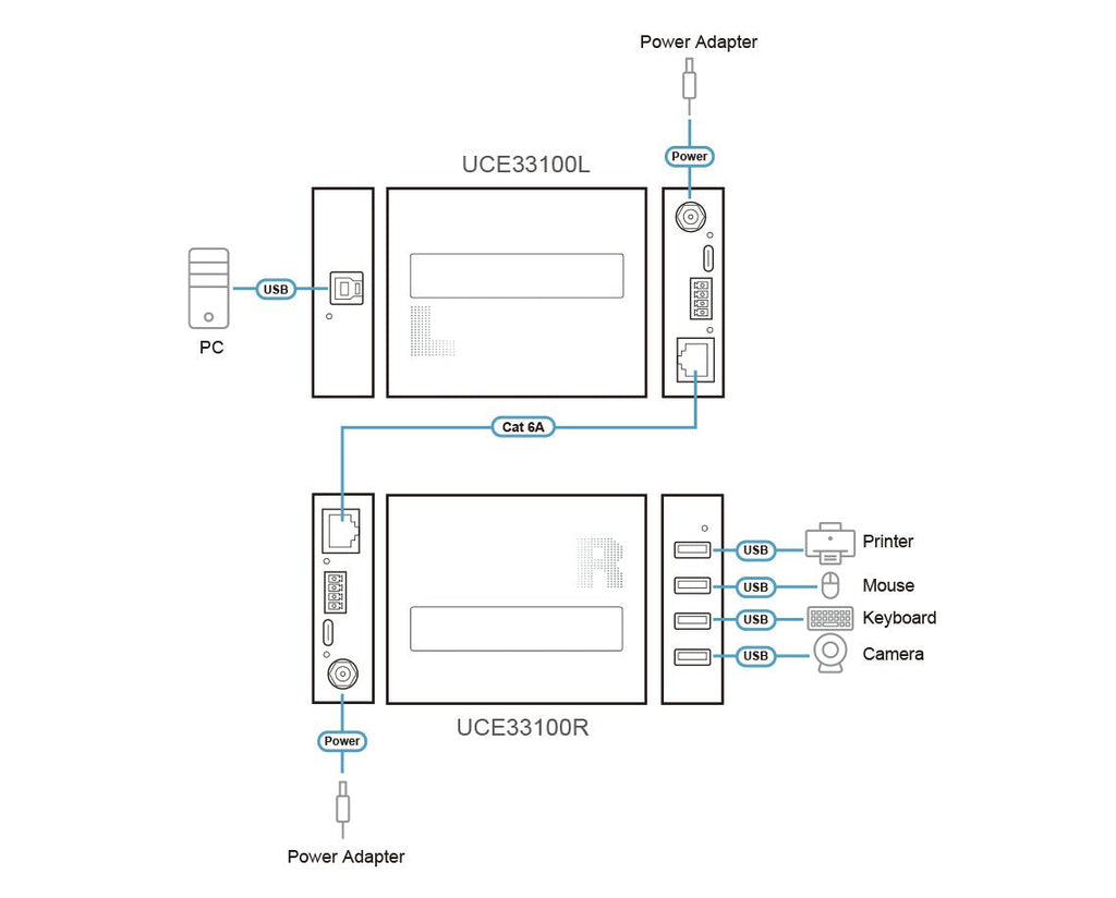 ATEN UCE33100 ampliador de red Transmisor y receptor de red Negro