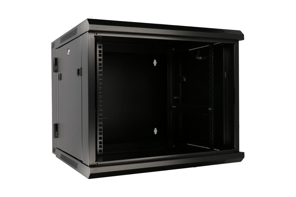 El armario rack de dos secciones de la marca EXTRALINK, con dimensiones de 12U y 600 × 600 mm, es la solución ideal para montaje en pared en oficinas, salas de servidores y en salas de control de instalaciones CCTV. Las paredes externas están hechas de acero laminado en frío, lo que garantiza durabilidad y resistencia a daños. Las puertas frontales, equipadas con vidrio templado, pueden abrirse tanto hacia la izquierda como hacia la derecha. La construcción de dos secciones del armario facilita el acceso a los componentes instalados desde la parte trasera.