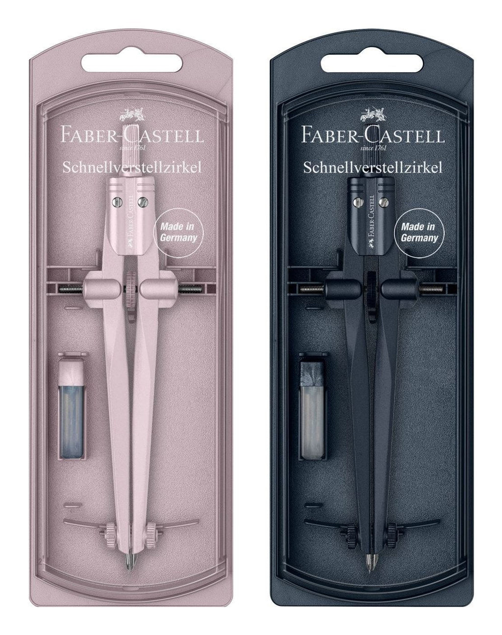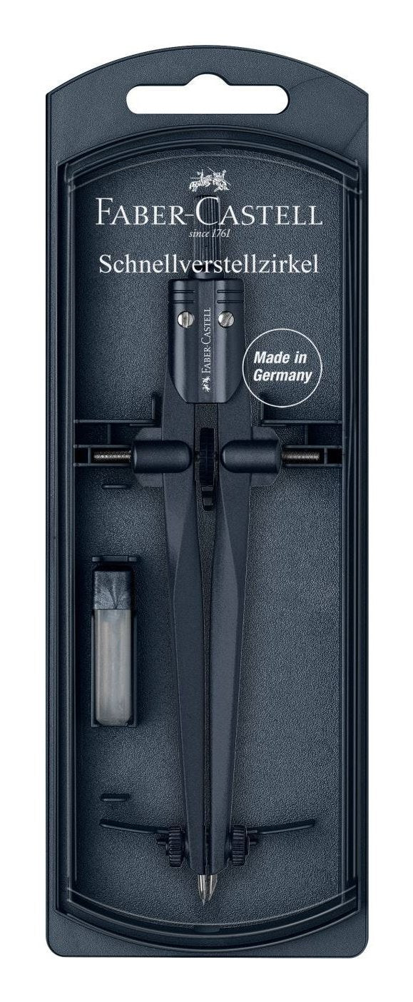 Calidad y funcionalidad combinadas con excepcional diseño - este es el lema de la compañía Faber-Castell. Incluso respecto a los compases, el líder de mercado debe estar al tanto de las últimas tendencias. Al margen de las modas de diseño, Faber-Castell ofrece una resistente tecnología. Ruedas de sujeción robustas, tornillos centrales firmes, brazos fáciles de ajustar, agujas antideslizantes y abrazaderas para minas y líneas exactas son rasgos esenciales de los compases Faber-Castell.