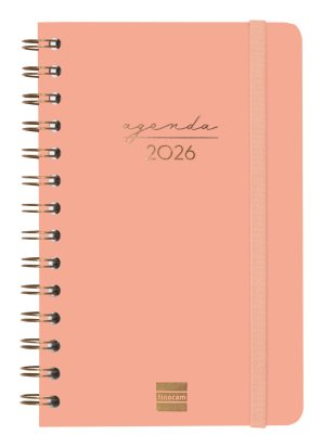 Agenda de espiral de tapa dura de cartón forrado con peliculado mate antirrayaduras. Diseño elegante y sofisticado con detalles estampados metalizados. Ideal para uso personal y/o profesional. Con goma elástica y esquinas microperforadas para localizar rápidamente el día/semana en curso. Incorpora un set de adhesivos temáticos. El diseño interior es limpio y fácil, con espacio suficiente para organizar tus proyectos, tareas y compromisos. Contiene información de interés en la anualidad y otros contenidos extra orientados a la organización personal.