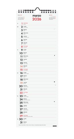 Calendario anual de pared encuadernado con espiral doble y con colgador. Perfecto para planificar. Contiene información útil y de interés, espacio diario para anotaciones y mes anterior y posterior en cada página. Ideal para la coordinación de equipos en salas de reuniones o para el hogar.