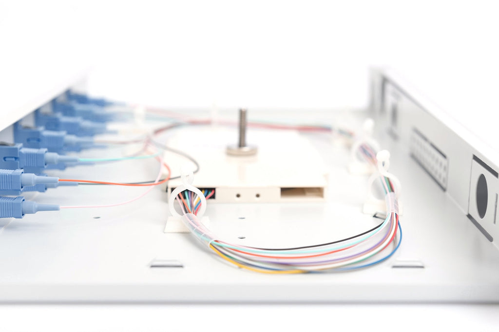 - La caja de empalmes ya está pre-funcionalizada: un casete de empalmes montado y los acoplamientos correspondientes para el panel frontal ya están instalados.