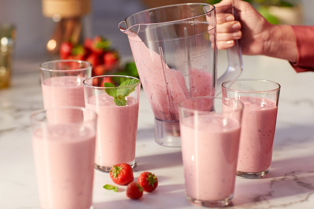 La jarra resistente de 1,5 l dispone de una capacidad de 1 l para preparar hasta 5 batidos a la vez.