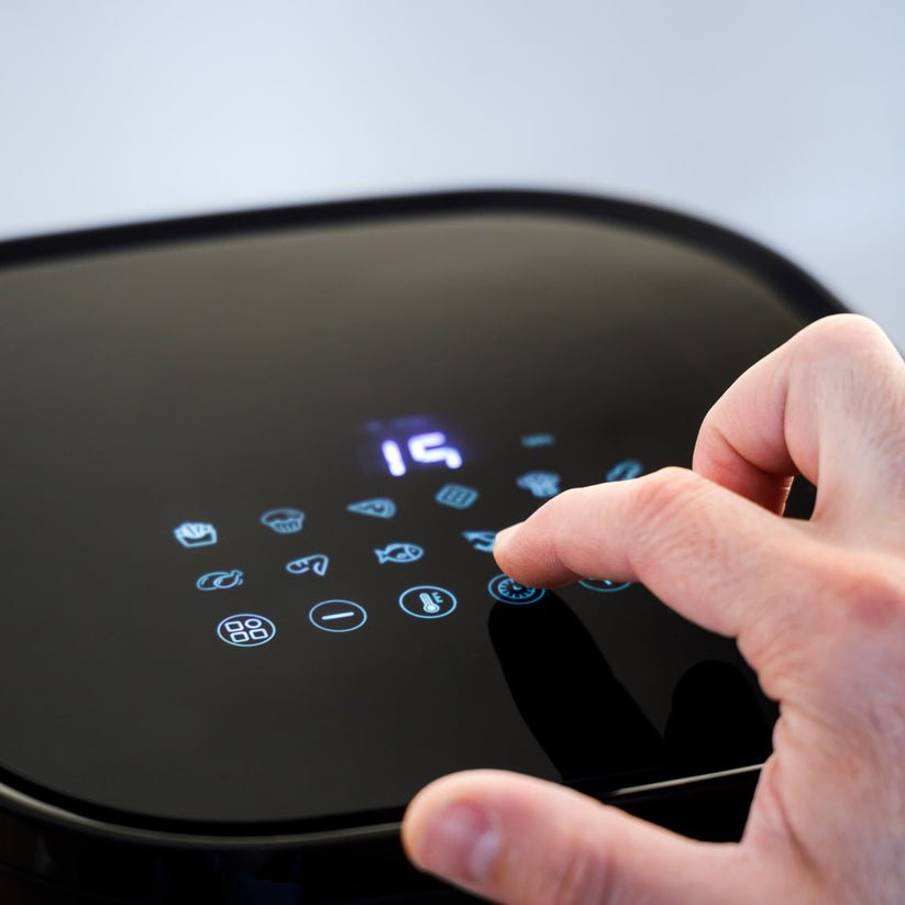 La pantalla digital táctil facilita el uso de la freidora de aire gracias a su gran visibilidad y a su uso funcional e intuitivo. Permite programar al completo el cocinado de cada plato.