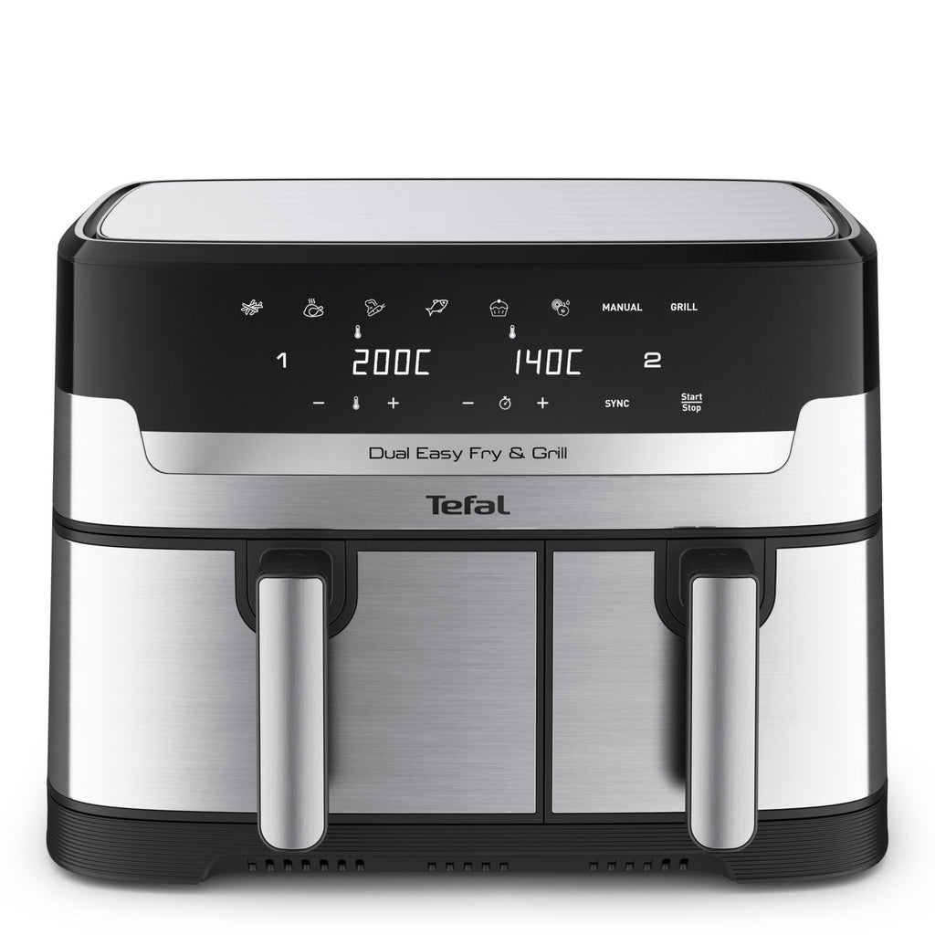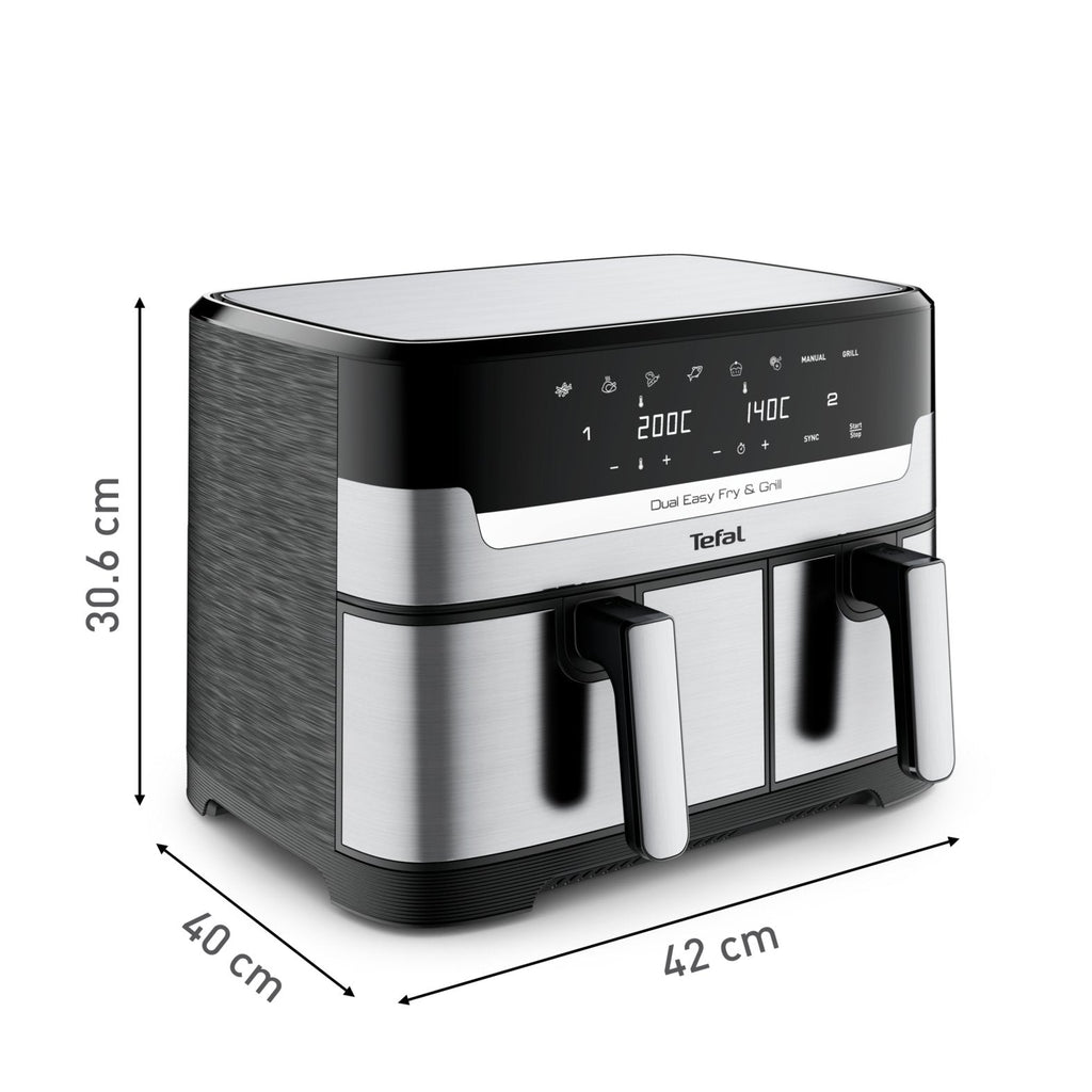 Tefal Dual Easy Fry & Grill EY905D, Freidora de aire caliente, 8,3 L, Doble, Acero inoxidable, Tocar, Independiente
