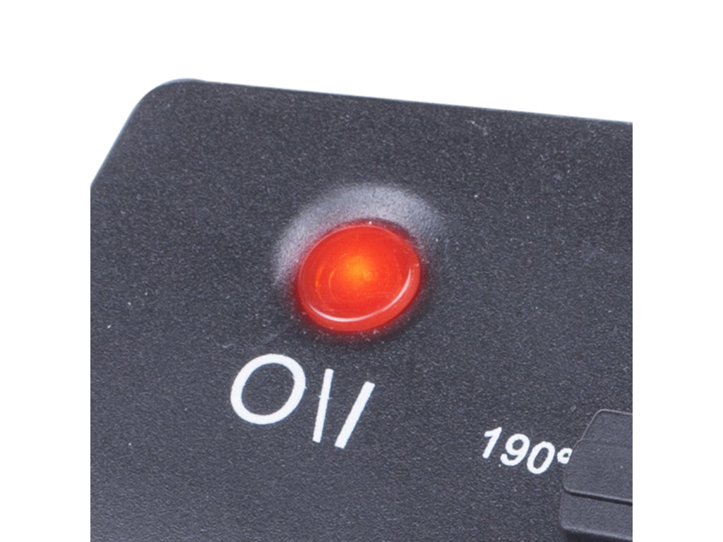 Panel de control sencillo para ajustar la freidora hasta 190⁰ C con un selector y luz indicadora