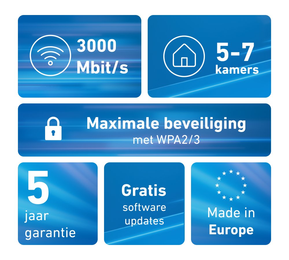- Doble banda (2,4 GHz / 5 GHz) Wi-Fi 6 (802.11ax) 3000 Mbit/s