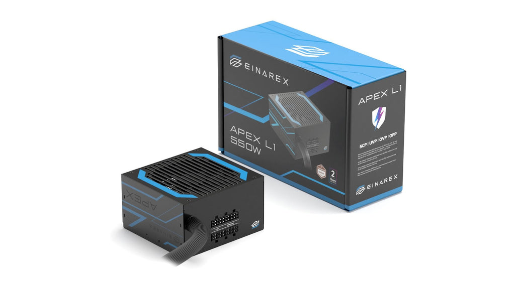 La Einarex Apex L1 es una fuente de alimentación semimodular de alta fiabilidad con certificación Bronze (Cybenetics), ideal para usuarios que buscan un equilibrio entre eficiencia, prestaciones y relación calidad-precio. Diseñada para equipos de gama media que demandan potencia estable y protección completa, la Apex L1 incorpora un ventilador de 120 mm, sistema de cables semimodular para reducir el desorden interno y certificaciones que avalan su rendimiento. Con versiones de 550 W, 650 W y 750 W, es una opción versátil para distintos escenarios de uso.
