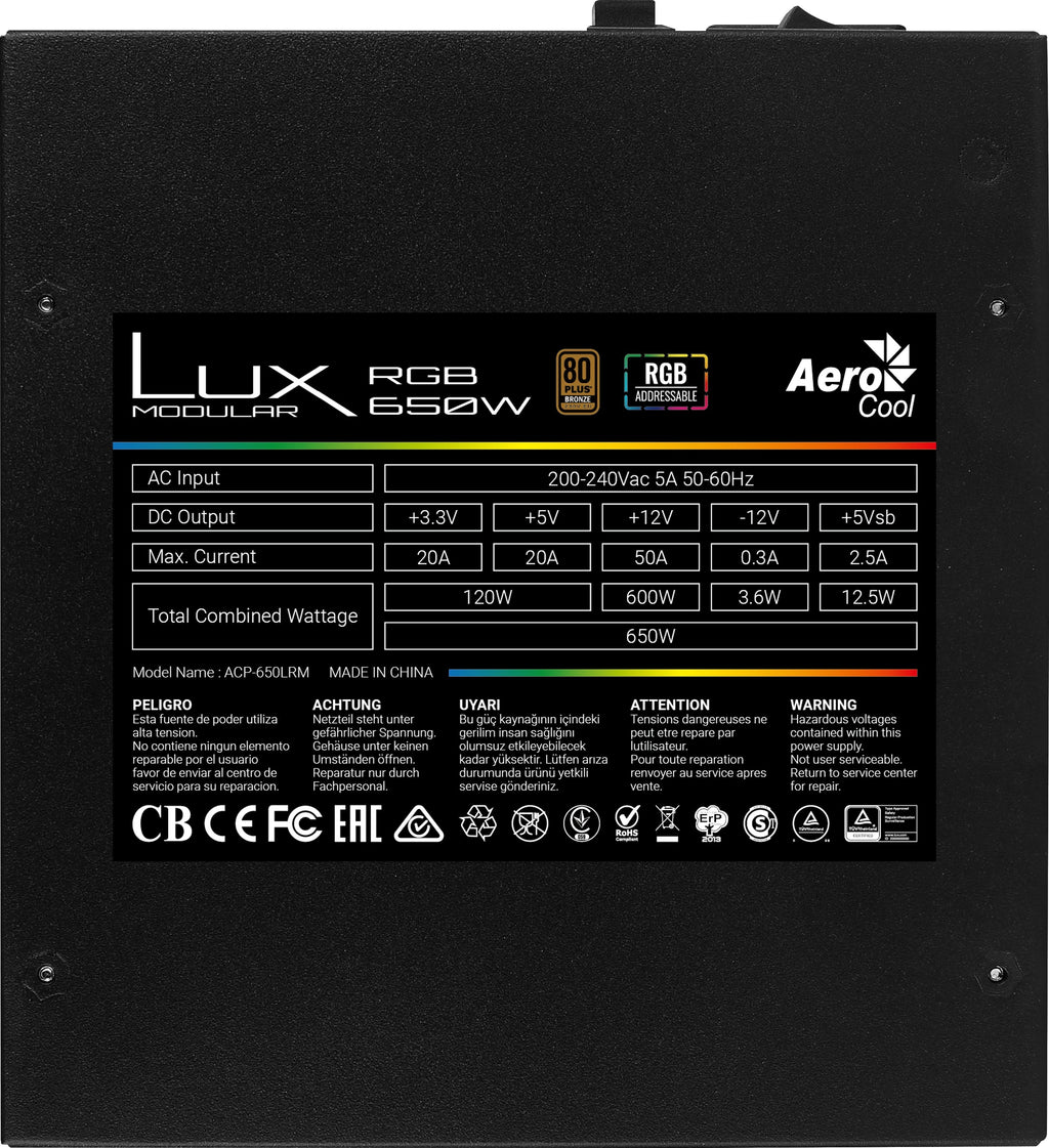 Fuente De Alimentación Aerocool Lux Rgb 650m 650w Ventilador 12cm 80 Plus Bronze
