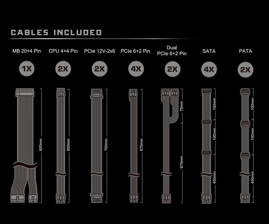 - Longitud del cable de alimentación de la placa base: 60 cm