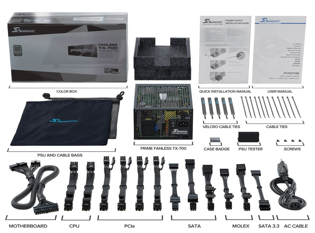 Seasonic PRIME Fanless TX unidad de fuente de alimentación 700 W 20+4 pin ATX ATX Negro