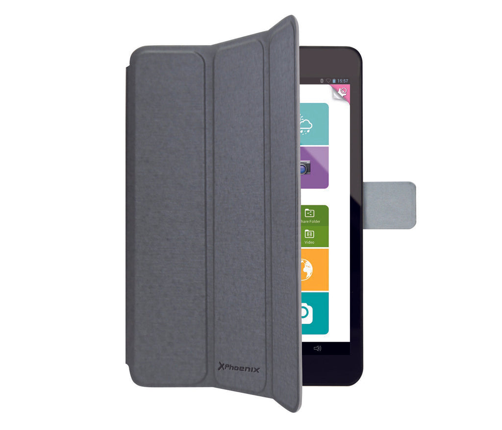 La funda PHOENIX negra de piel tiene un tacto suave y un diseño de cuero sintético ajustable. El soporte plegable de ésta funda permite teclear sin tener que sostener el PHVEGATAB8, leer o ver videos desde varios ángulos.