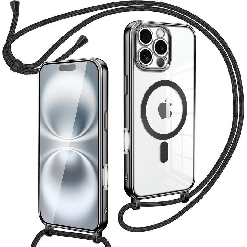 Funda Magnética Con Colgante Para Iphone 16 Pro Max Negro