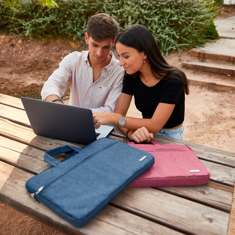 Fabricado en poliéster, con interior acolchado. Funda con doble bolsillo, con cremallera doble metálica ultrarresistente para poder cerrar y proteger tu portátil, ipad, tablet... El interior está reforzado ofreciendo una protección extrema para su contenido.