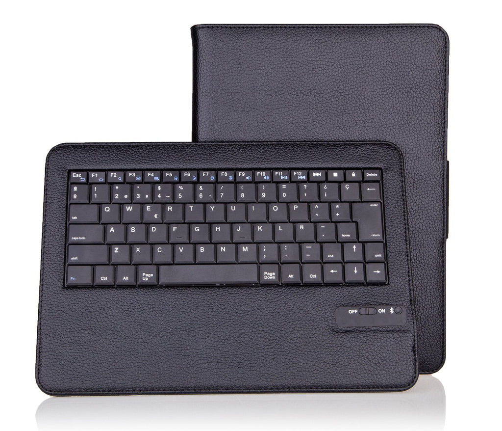 Funda Universal Phoenix para Tablets | iPad | 8" | Tacto suave | Acabado en piel sintética | Interior Terciopelo | Negro | Semi Rígida | teclado bluetooth con miniUSB.