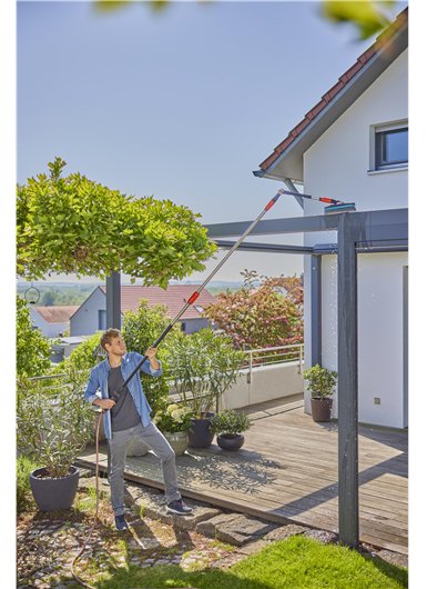 Superfácil: el mango se conecta fácilmente a la manguera de jardín para limpiar zonas de difícil acceso La extensión para otros mangos: con el mango Cleansystem Flex se puede prolongar otro mango 53 cm Ideal para zonas de difícil acceso: la articulación puede inclinarse con precisión 45°, lo que facilita la limpieza GARDENA extiende una garantía de 5 años al registrar este artículo. Más información en la descripción del producto Contenido del producto: 1 Mango GARDENA Cleansystem Flex El mango GARDENA Cleansystem Flex es ideal para lavar zonas de difícil acceso, como los tejados de las terrazas. Sencilla limpieza de superficies de difícil acceso gracias al mango conductor de agua El mango conductor de agua Flex puede conectarse fácilmente a la manguera de jardín mediante la conexión Original GARDENA System. De esta forma se consigue una limpieza eficaz, ya que el agua se dirige por el mango directamente al cepillo, hasta allí donde se necesita. De este modo, se pueden limpiar fácilmente superficies de difícil acceso, como cubiertas de terraza, pérgolas o invernaderos. Al mismo tiempo, la limpieza resulta mucho más cómoda, ya que no es necesario usar un cubo de agua para limpiar. Limpieza con un mayor alcance El mango GARDENA Flex amplía en 53 cm el radio de acción de la limpieza. De este modo, limpiar las superficies horizontales elevadas, como los tejados de terrazas o las carpas, es facilísimo. A partir de ahora ya no es necesario estar llevando una escalera de un lado a otro. El mango se compone de aluminio resistente y de gran calidad y presenta un cómodo revestimiento. Puede ajustarse en un ángulo de 45° por ambos lados El mango se puede inclinar 45° a ambos lados, lo que permite limpiar fácilmente superficies más altas, como el tejado de un invernadero o una caravana. El mango Flex se acopla fácilmente junto con otro mango Cleansystem en la manguera de jardín y sirve de extensión. Compatible con mangos y cepillos acoplables Cleansystem El mango Flex es una ampliación tanto de los mangos GARDENA Cleansystem (18000, 18002, 18804) como de los mangos acoplables (18808, 18812, 18810, 18814, 18816). Los cepillos acoplables son compatibles y se pueden acoplar sin problema. Larga vida útil El producto está fabricado en Alemania y, como todos los productos GARDENA, convence por la calidad de confianza, que también se refleja en los 5 años de garantía, tras el registro en gardena.com/es/c/asistencia/registro-garantia en un plazo de 3 meses desde la compra. Condiciones de garantía en gardena.com/es/c/asistencia/registro-garantia.