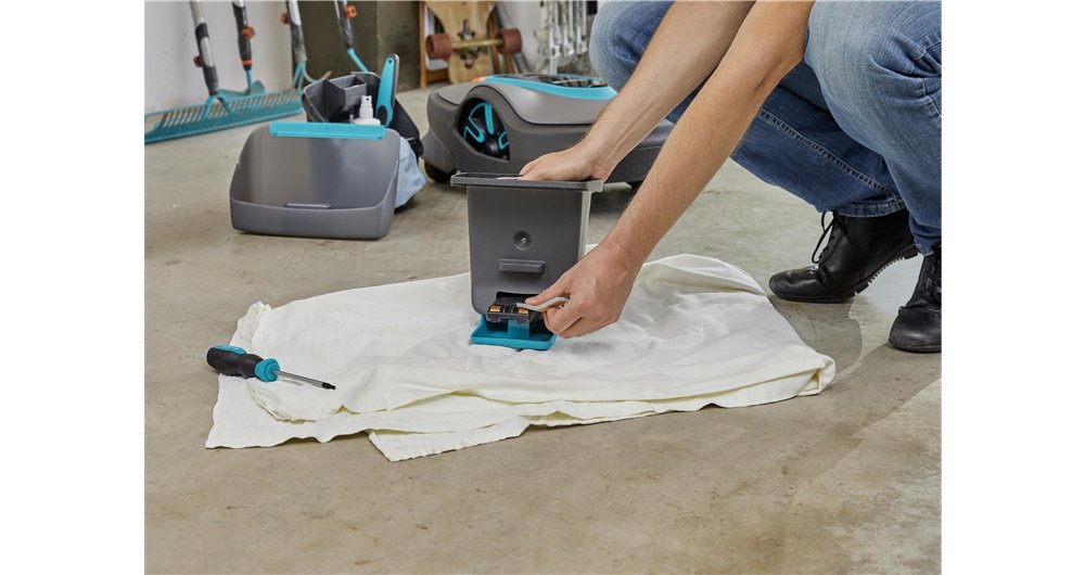 El kit de mantenimiento y limpieza de GARDENA para Robots cortacésped contiene una almohadilla abrasiva para evitar que el cortacésped se ensucie, dos cepillos diferentes para eliminar el césped seco y sucio de la parte inferior de la máquina, un spray de limpieza para las partes de plástico y un destornillador especial, por ejemplo, para cambiar las cuchillas. Todas las piezas estan protegidas del polvo y la suciedad en un práctico box de plástico con tapa.
