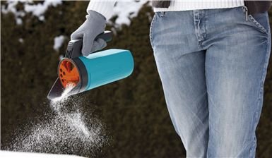 Reparto sencillo de la gravilla en invierno en pequeñas superficies. Adecuado para arena, gravilla y sal. Reparto sencillo mediante un sistema único de dosificación. Ajuste sencillo a través de un botón de gran ajuste. p. ej. para trabajar cómodamente con guantes. Apertura sencilla con cierre bayoneta. Recipiente de fácil manejo mediante empuñaduras de fácil agarre en ambos lados. 25 años de garantía Con tarjeta informativa a todo color. Cantidad de llenado: Arena aprox. 1.7 kg Sal aprox. 1.4 kg Gravilla approx 1.65 kg
