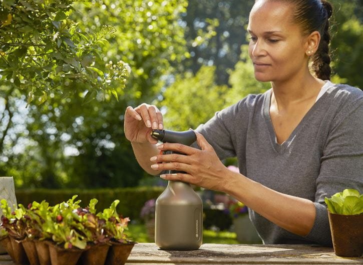 Suministrar agua rápidamente a las flores de sus plantas: esto funciona perfectamente una y otra vez con el pulverizador de bomba 0,75 l de GARDENA. Tiene el pulverizador de bomba inmediatamente a mano y puede usarlo dentro de su hogar, así como en su balcón o en el jardín. Independientemente del ángulo en el que sostenga el pulverizador en la mano, el agua se aspira cada vez que se presiona el mango, ya que la manguera de aspiración siempre está en el agua gracias a la función 360 ° y no se aspira aire. En combinación con la boquilla de latón robusta de alta calidad, con cada pulverización se logra el máximo rendimiento. Ajuste la boquilla de manera simple y cómoda para usar un chorro completo o un pulverizado. El nivel del agua se puede ver fácilmente a través del recipiente translúcido. El mango ergonómico lo hace muy agradable de usar, incluso si tiene los dedos mojados. La gran abertura hace que el llenado de agua sea rápido y fácil.