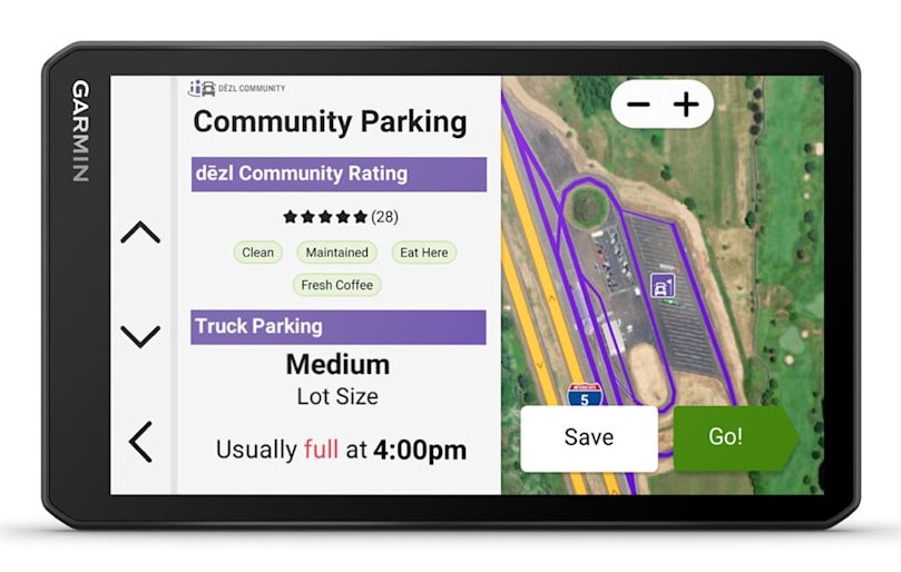 Para los conductores de camiones profesionales que buscan simplificar la vida en la carretera, el navegador por satélite dēzl LGV720 de 7″ ofrece valiosas funciones de la comunidad dēzl1. Obtén información sobre la marcha sobre el aparcamiento, los muelles de carga y otros lugares interesantes para los camiones basados en las valoraciones de otros conductores.